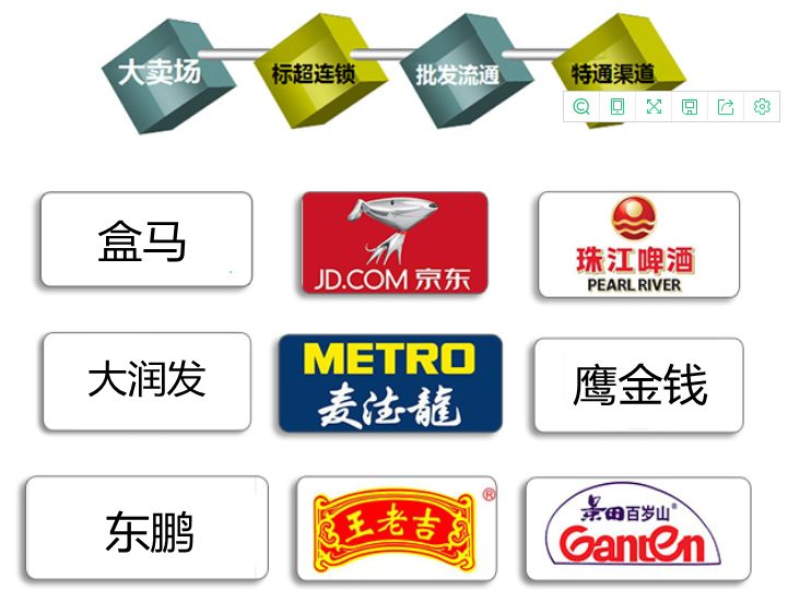 分銷代理招商:可自行完成產品從市場推廣、分銷代理、物流配送到市場服務的綜合經營業務,市場網絡遍布上海、江蘇、浙江、山東、安徽等華東地區。與江浙滬數百家二、三級分銷商合作,并通過這些分銷商,直接快速滲透可覆蓋的上萬家餐飲、加盟超市、夜店、名煙酒店、特渠等傳統渠道;另外與各類知名大型賣場、標超、便利店、高端超市等現代渠道和各類電子商務平臺,保持著良好的合作關系,擁有一支上百人、很強活躍的銷售團隊,成為華東知名的品牌運營商。